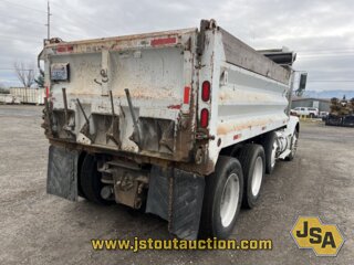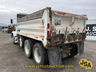 The Workman WDW15G dump box, 3 asphalt chutes, tarp system, pintle hitch w/air, air brakes, Chelsea PTO, diff lock, engine brake, idle control, cruise control, heated mirrors, A/C, AM/FM/CD, air suspension, 285/75R24.5 front tires, 255/70R22.5 lift tires, 285/75R24.5 rear tires.Specifications: