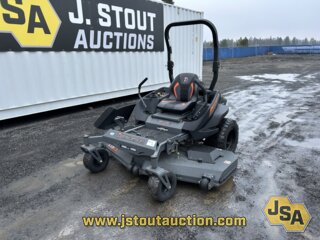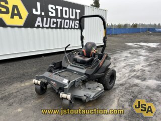 61" Cutting deck, Briggs & Stratton Vanguard 993cc gas engine, stand on operator's platform, 13x6.50R6 front tires, 24x14.00R12 rear tires.